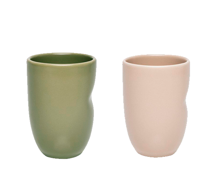 Par de copos Unni em cerâmica na cor oliva e merengue, com capacidade de 320 mL. Elegantes, versáteis e ideais para bebidas do dia a dia.